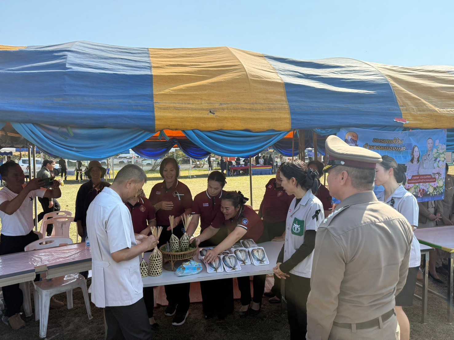 ภาวิณี พลนิกรกิจ นอภ.หนองแสง พ.ต.อ.สิทธิพร ธารากุลทิพย์ ผกก.สภ.หนองแสง คณะแพทย์ พอ.สว. คณะชมรมแม่บ้านตำรวจหนองแสง พร้อม หน.ส่วนราชการ จว.อุดรธานี ให้การต้อนรับ ซึ่งมีประชาชนมารับบริการประมาณ 1,000 คน เหตุการณ์ทั่วไปปกติ