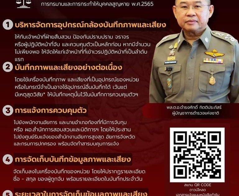 พล.ต.อ.ดำรงศักดิ์ กิตติประภัสร์ ผบ.ตร. กำชับ “แนวทางการปฏิบัติเกี่ยวกับการบันทึกภาพและเสียงในขณะจับและควบคุมตัวตามมาตรา 22 แห่ง พ.ร.บ.ป้องกันและปราบปรามการทรมานและการกระทำให้บุคคลสูญหาย พ.ศ.2565”