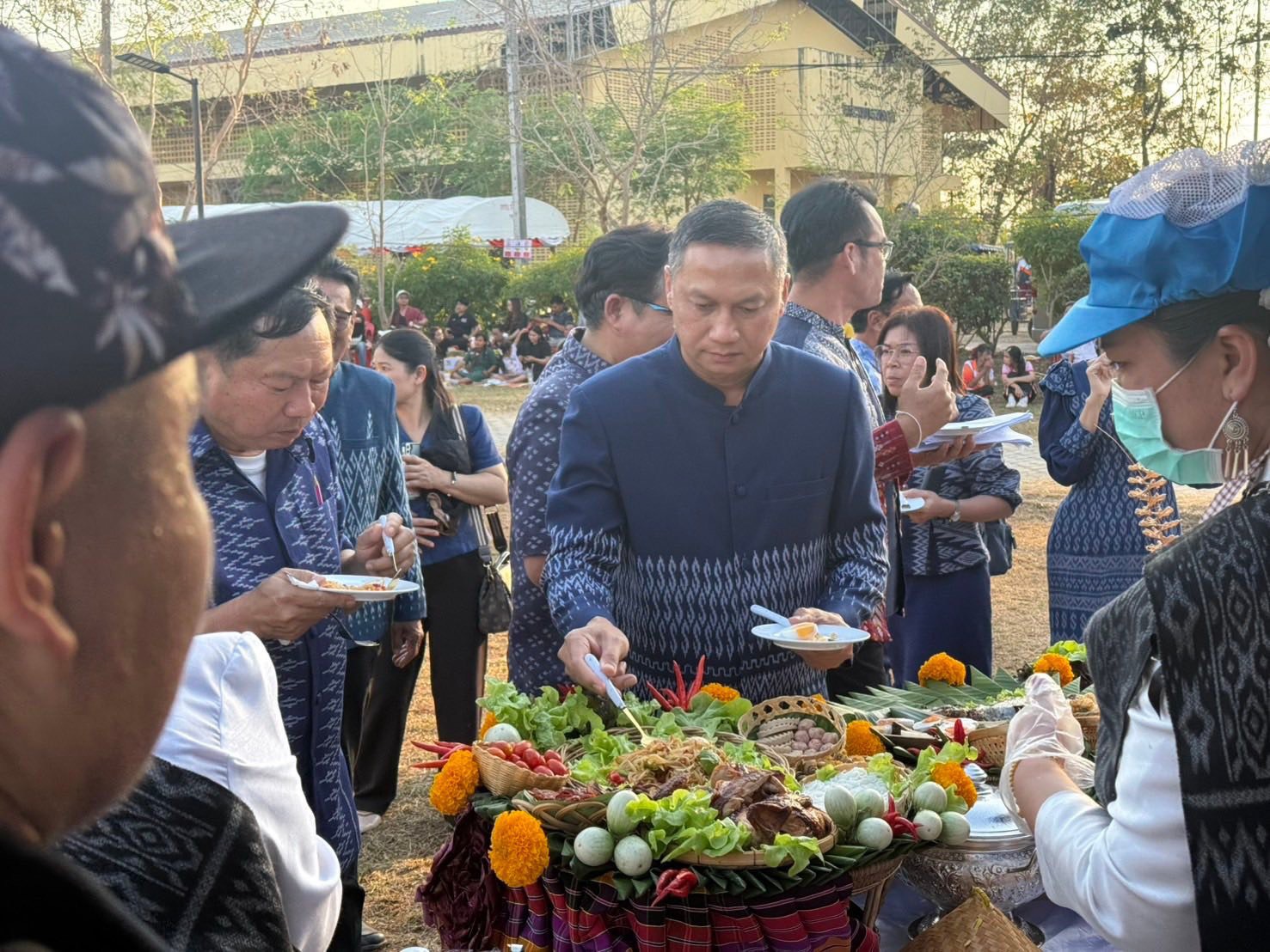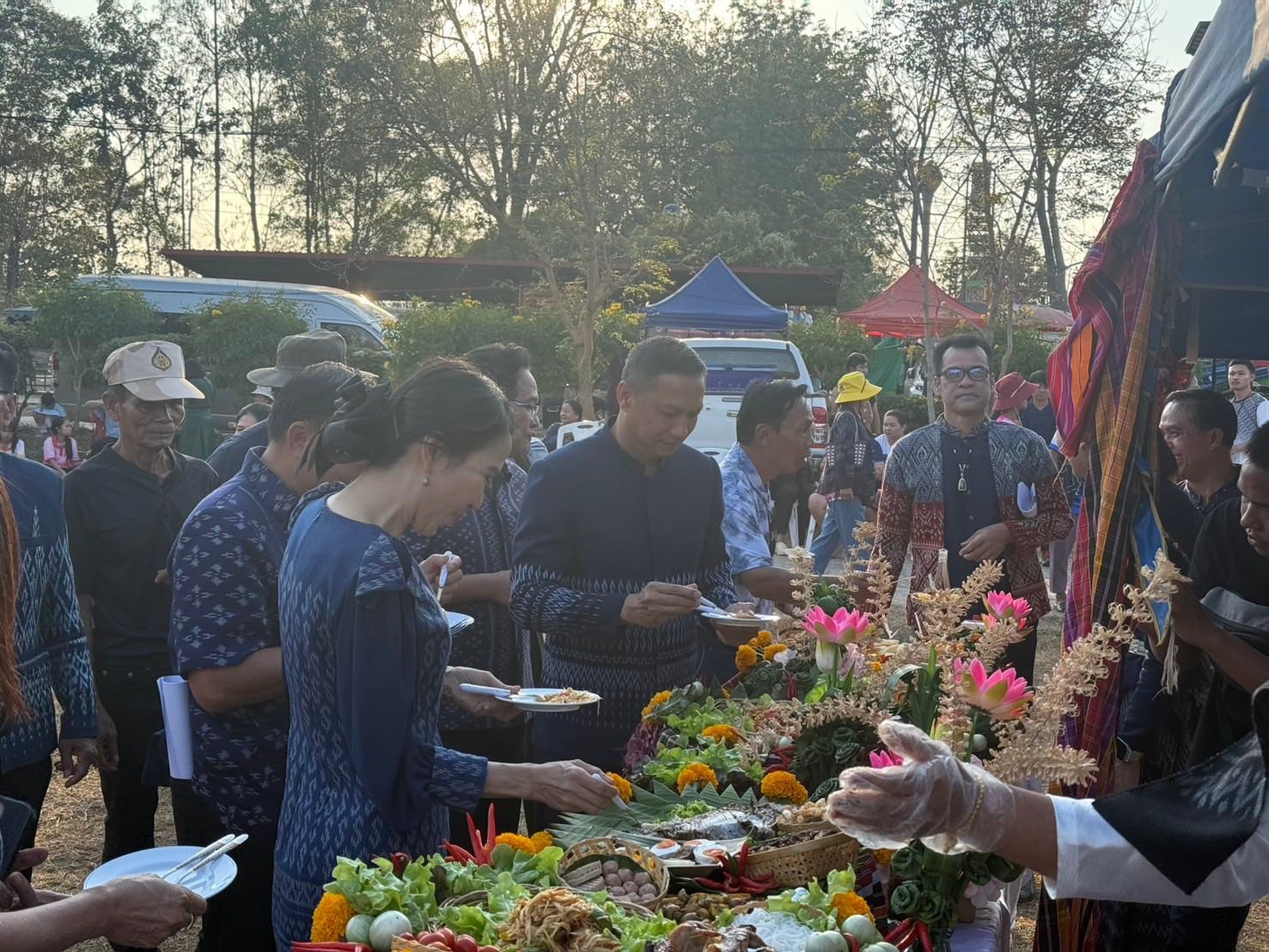 นางสาวภาวินี พลนิกรกิจ นอภ.หนองแสง และ พ.ต.อ.สิทธิพร ธารากุลทิพย์ ผกก.สภ.หนองแสง พร้อม หน.ส่วนราชการในพื้นที่ เยี่ยมชม การประกวดแข่งขันทำอาหารพื้นบ้าน ส้มตำลีลา การเดินแบบผ้าไทยพื้นบ้าน