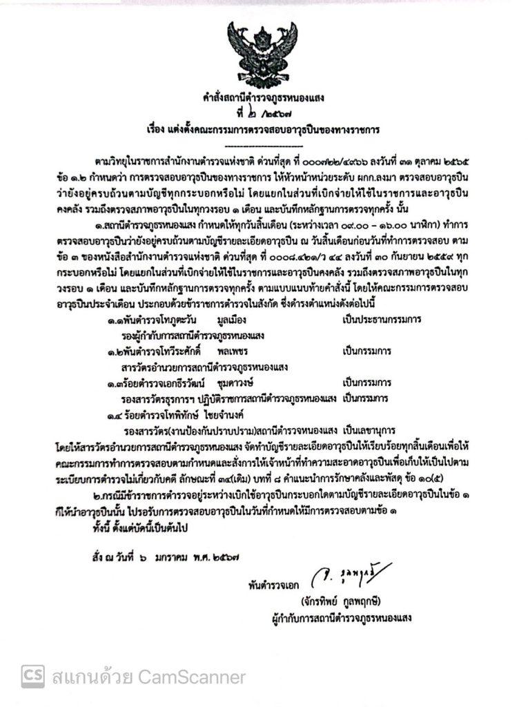 สภ.หนองแสง มีการจัดทำบัญชีควบคุมทรัพย์สินประเภทศาสตราวุธ อาวุธปืน