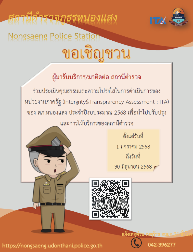 การขับเคลื่อนการประเมินคุณธรรมและความโปร่งใสในการดำเนินงานของหน่วยงานภาครัฐ (Integrity and Transparency Assessment: ITA) ของสถานีตำรวจภูธรหนองแสง ประจำปีงบประมาณ พ.ศ. 2568
