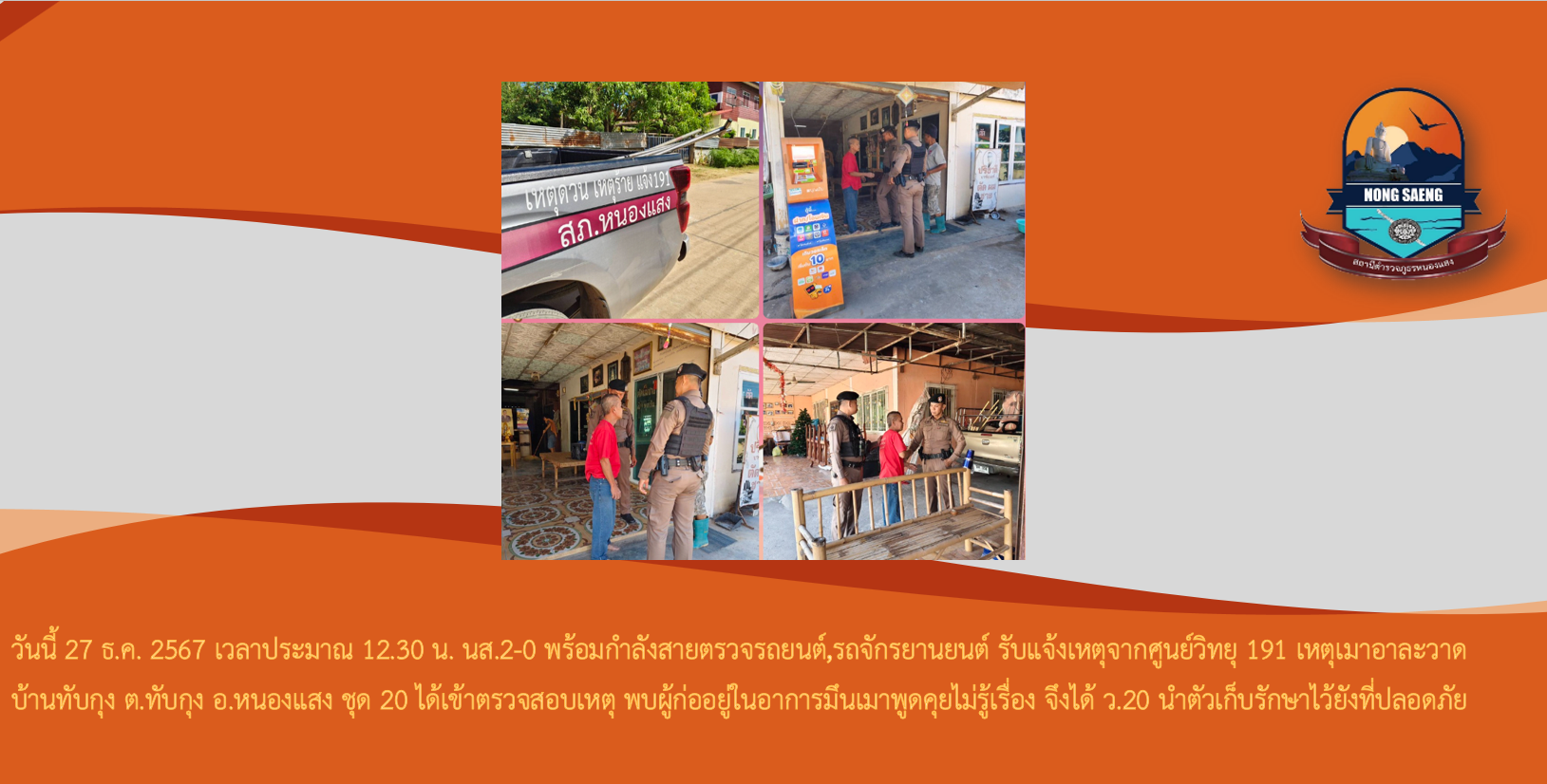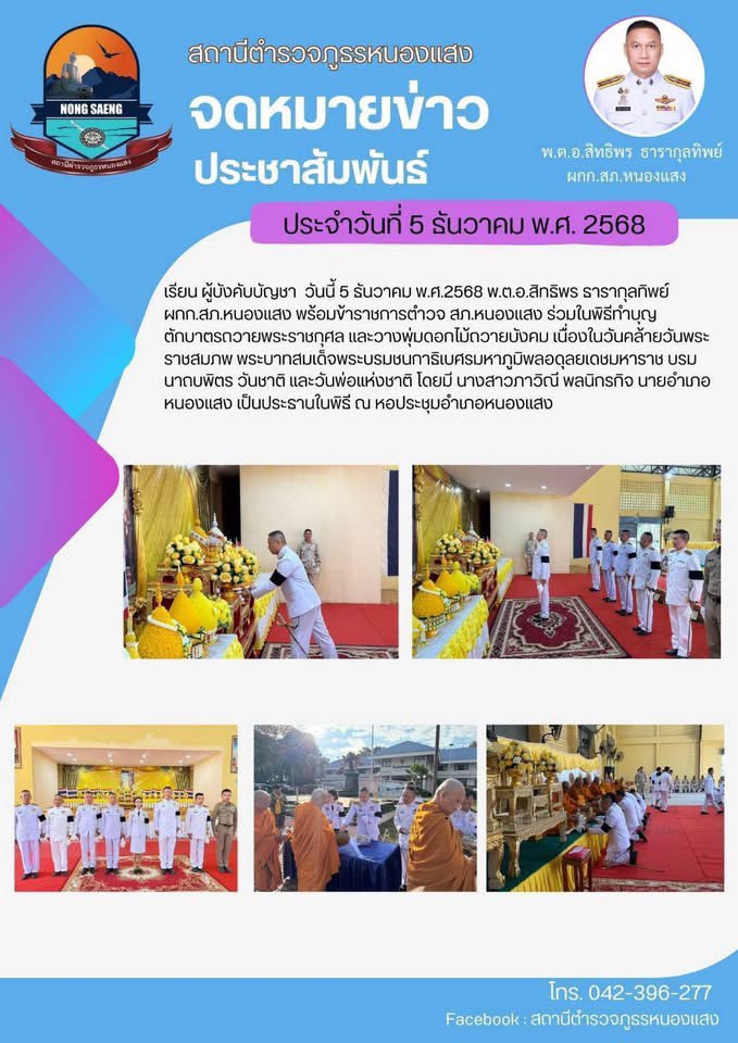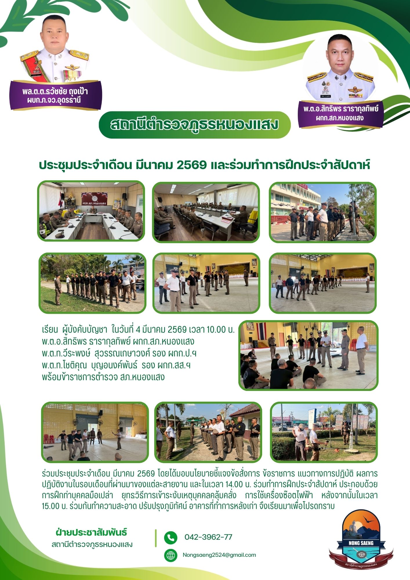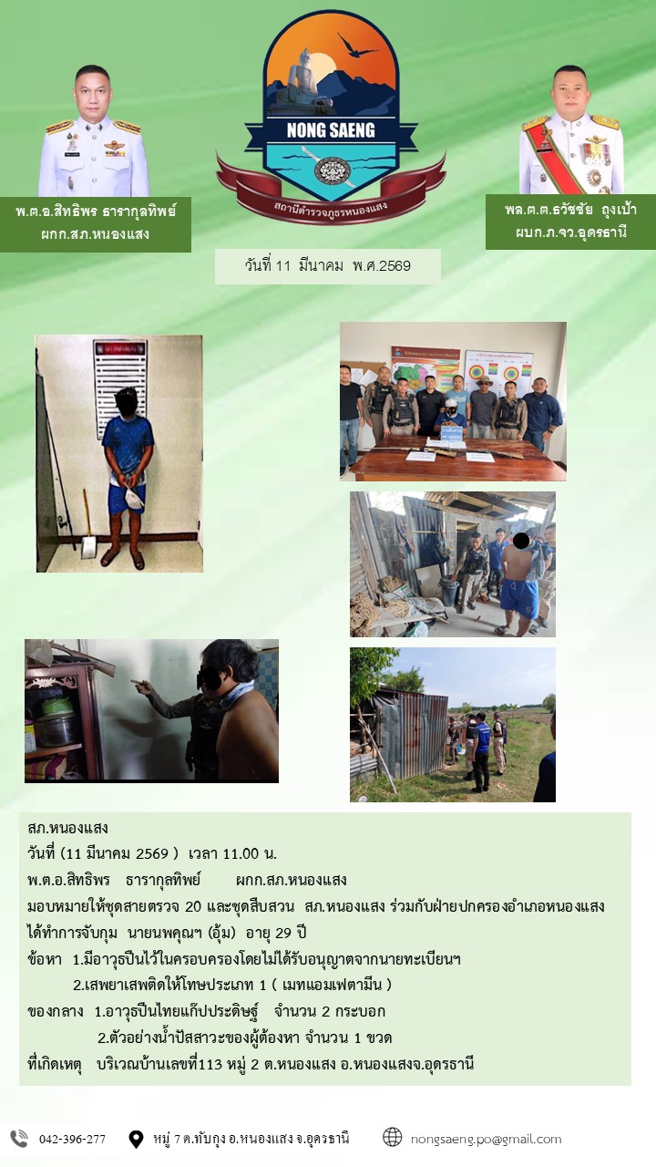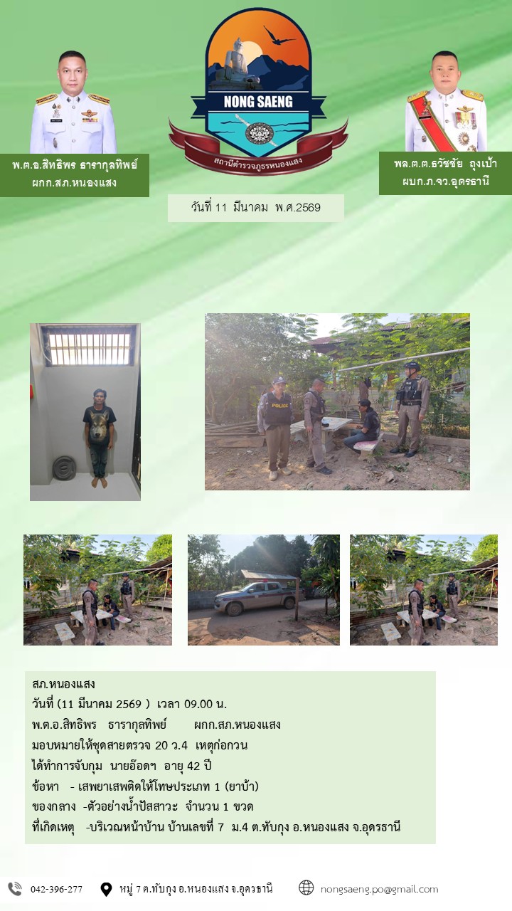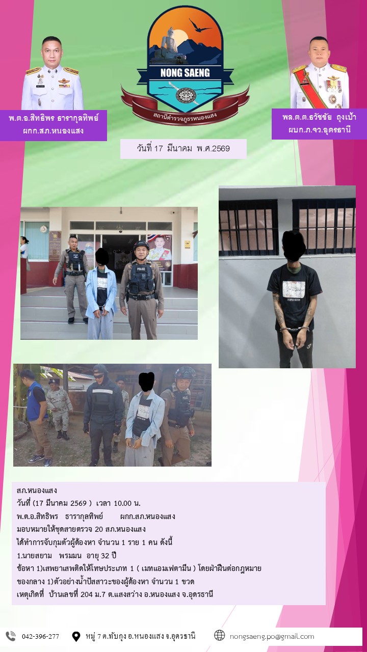 รายงานผลการปฏิบัติราชการประจำเดือนสถานีตำรวจภูธรหนองแสง