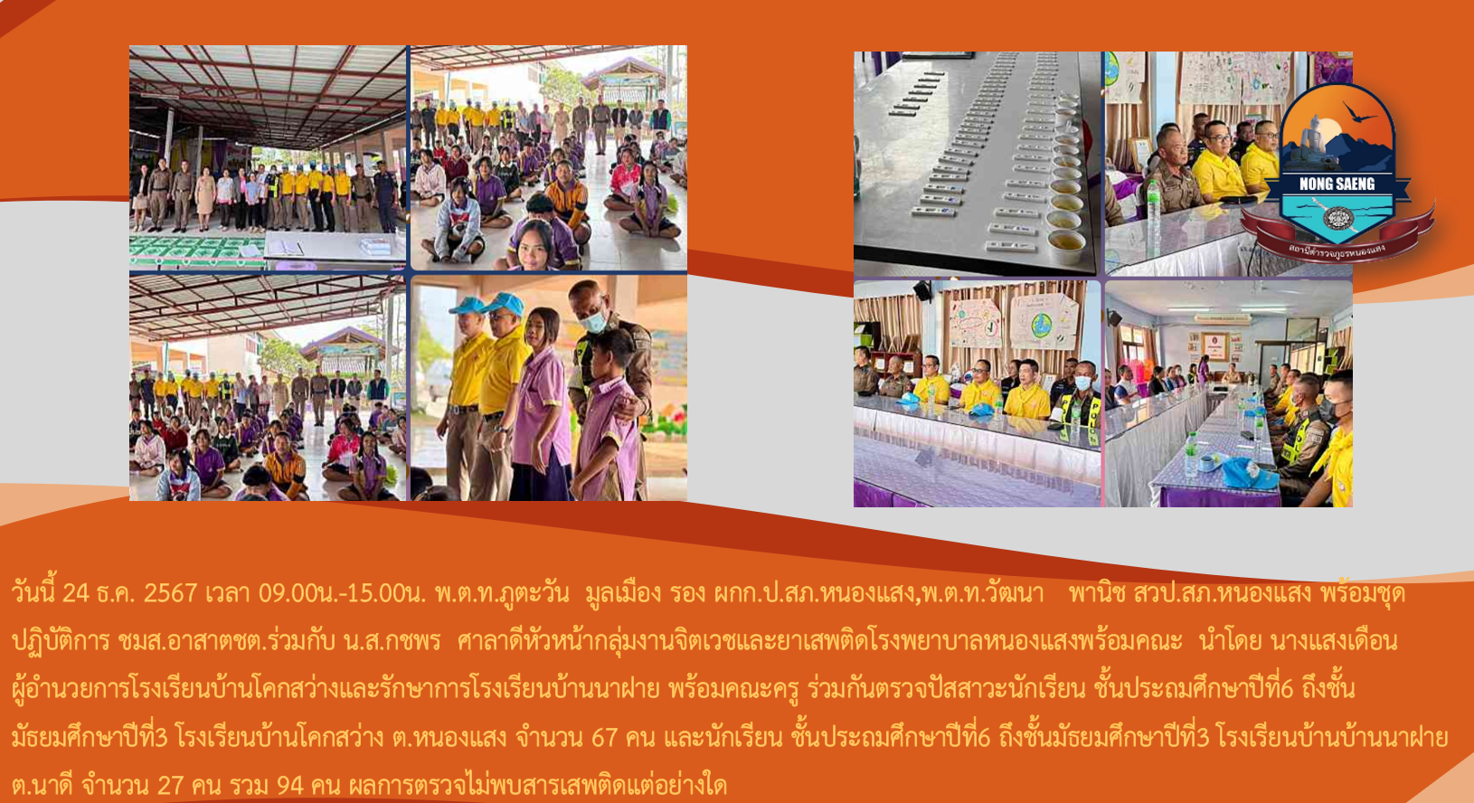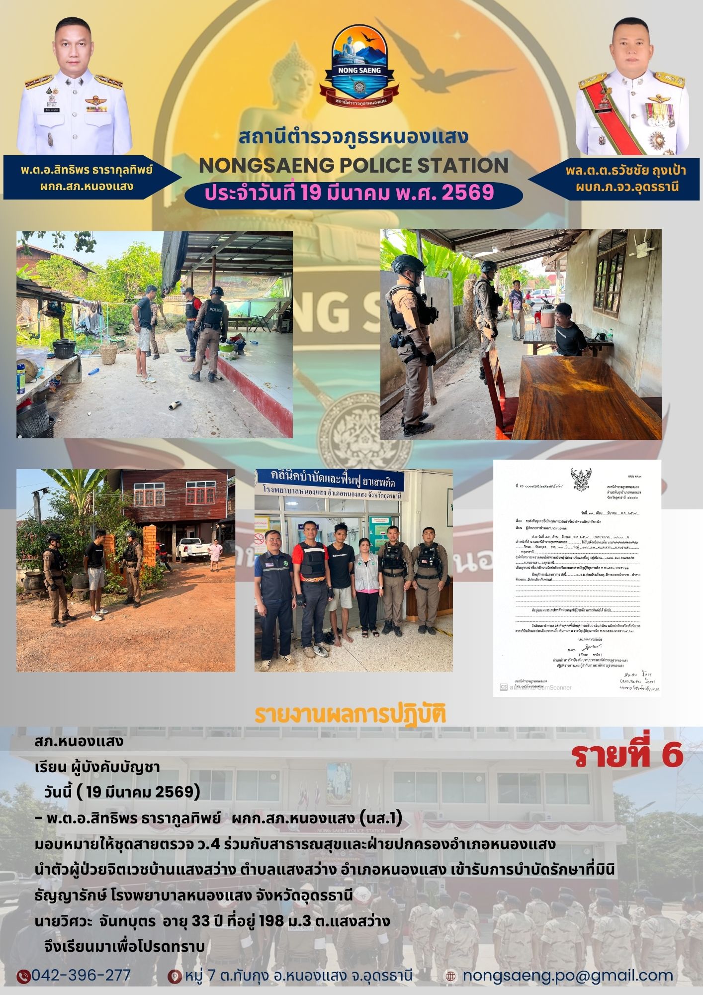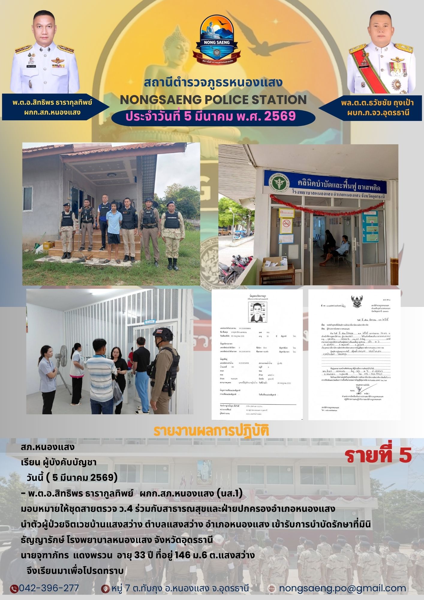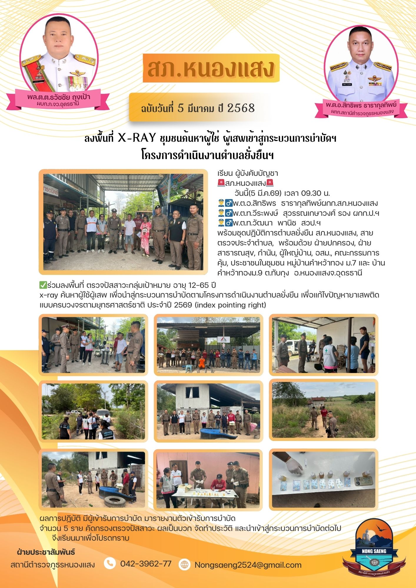 รายงานผลการปฏิบัติราชการประจำเดือนสถานีตำรวจภูธรหนองแสง