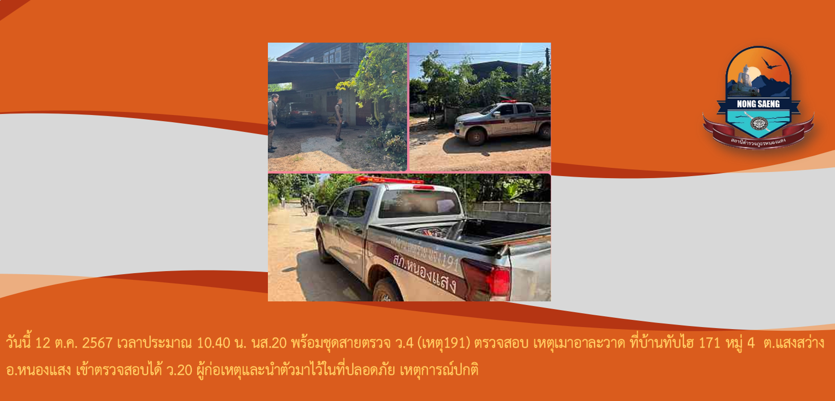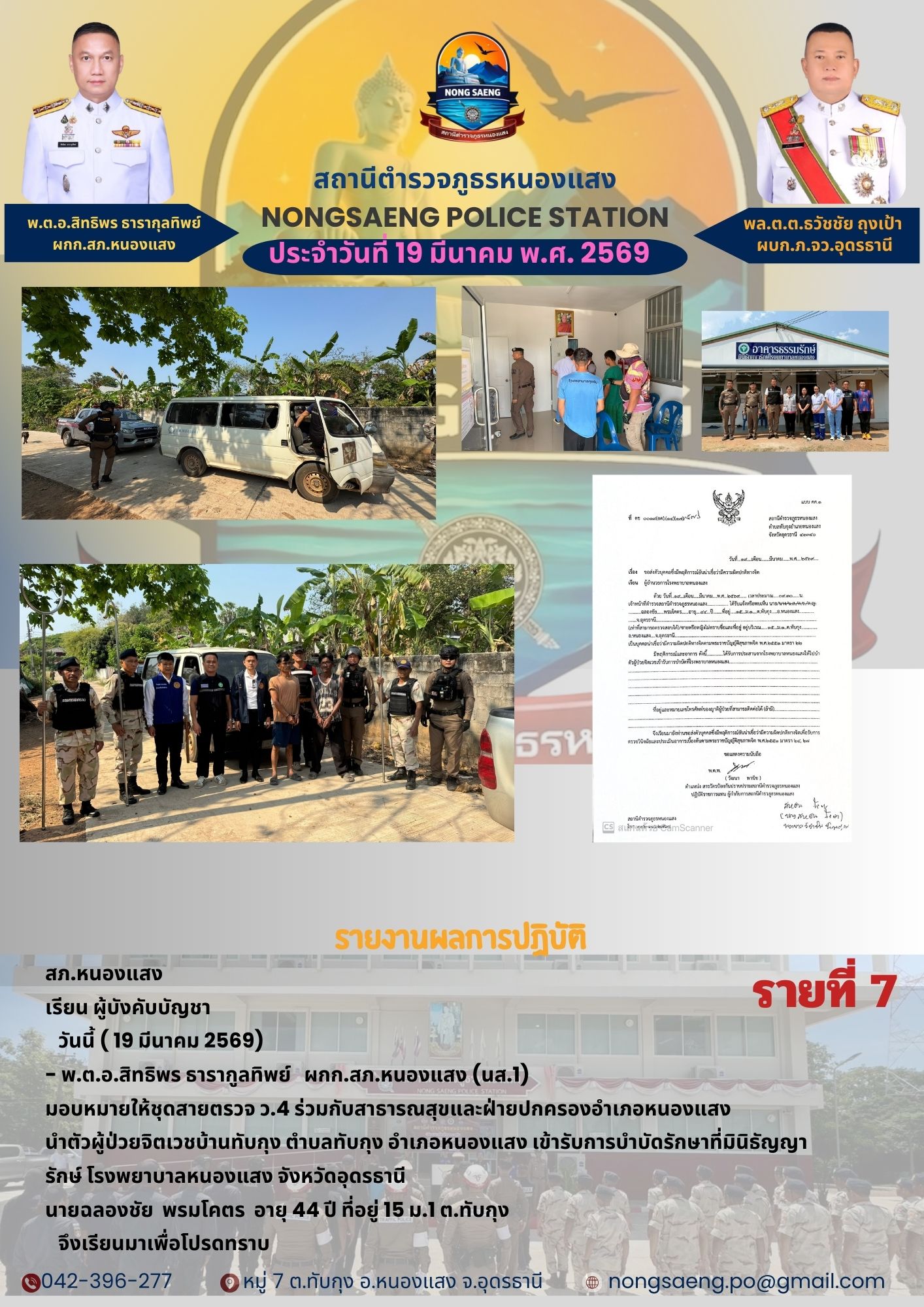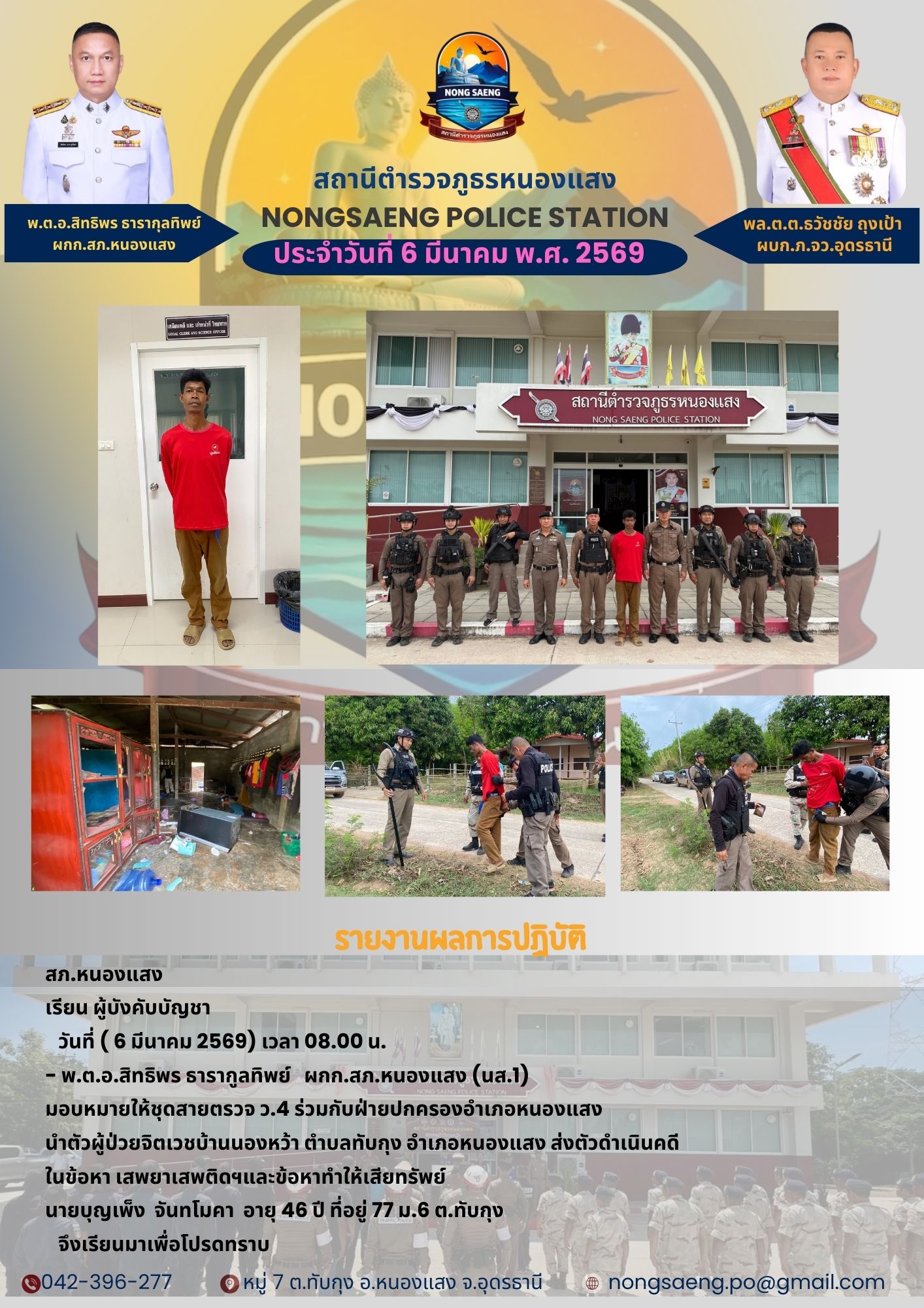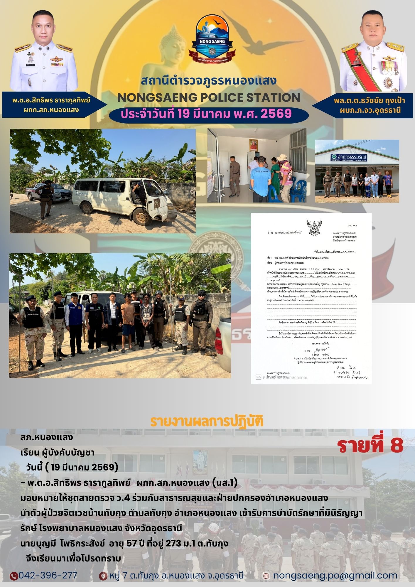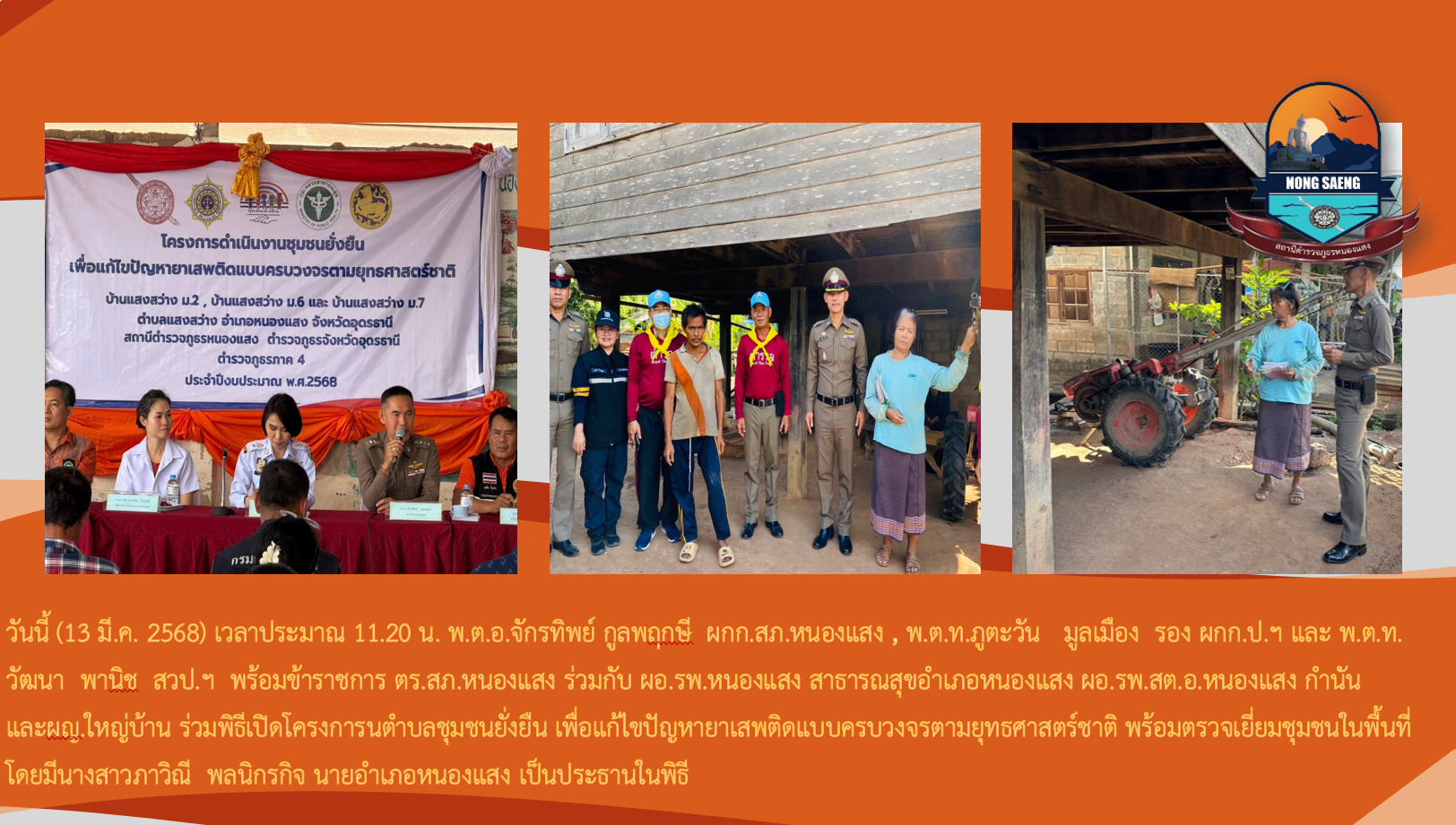 รายงานผลการปฏิบัติราชการประจำเดือนสถานีตำรวจภูธรหนองแสง