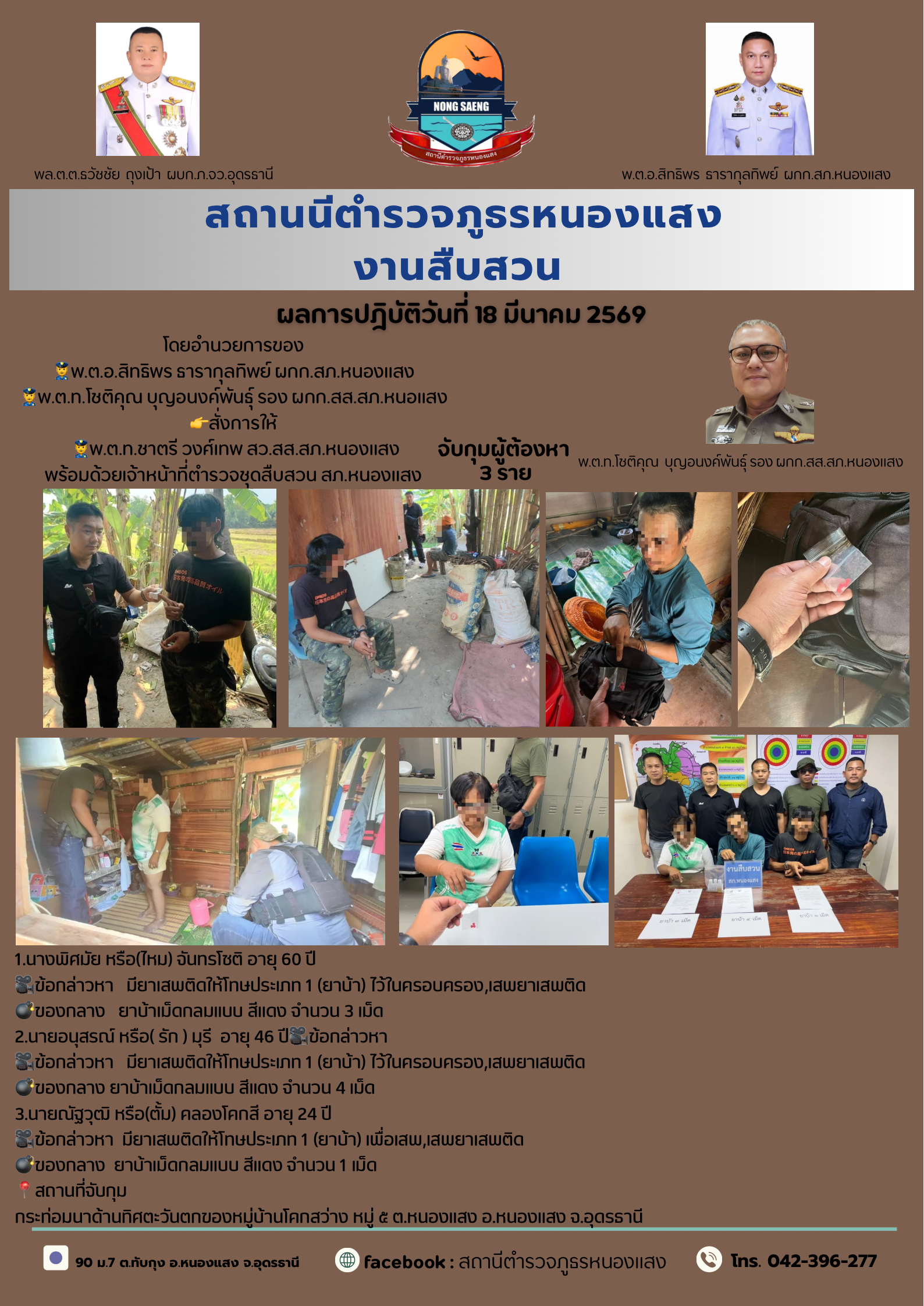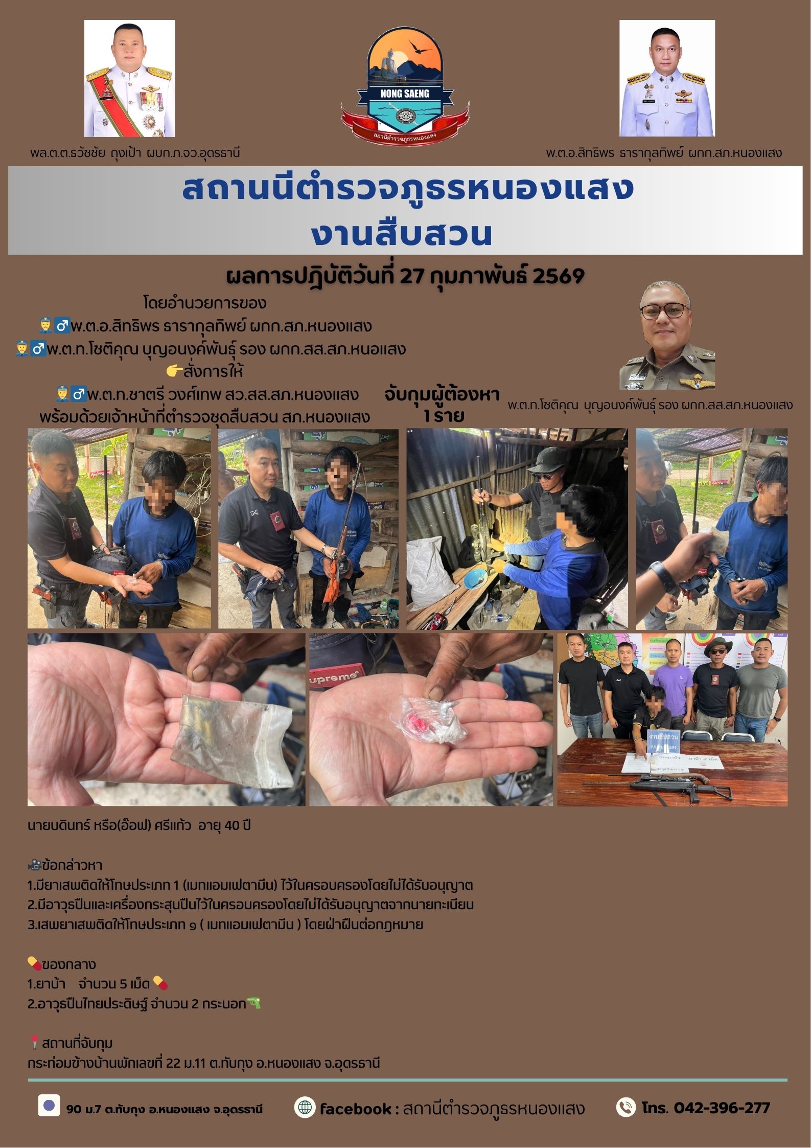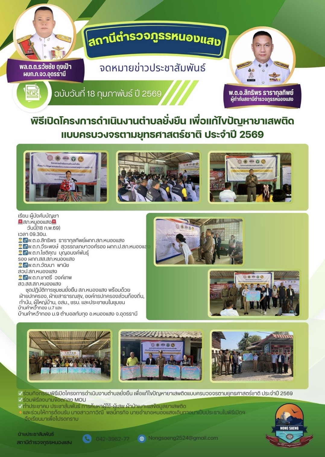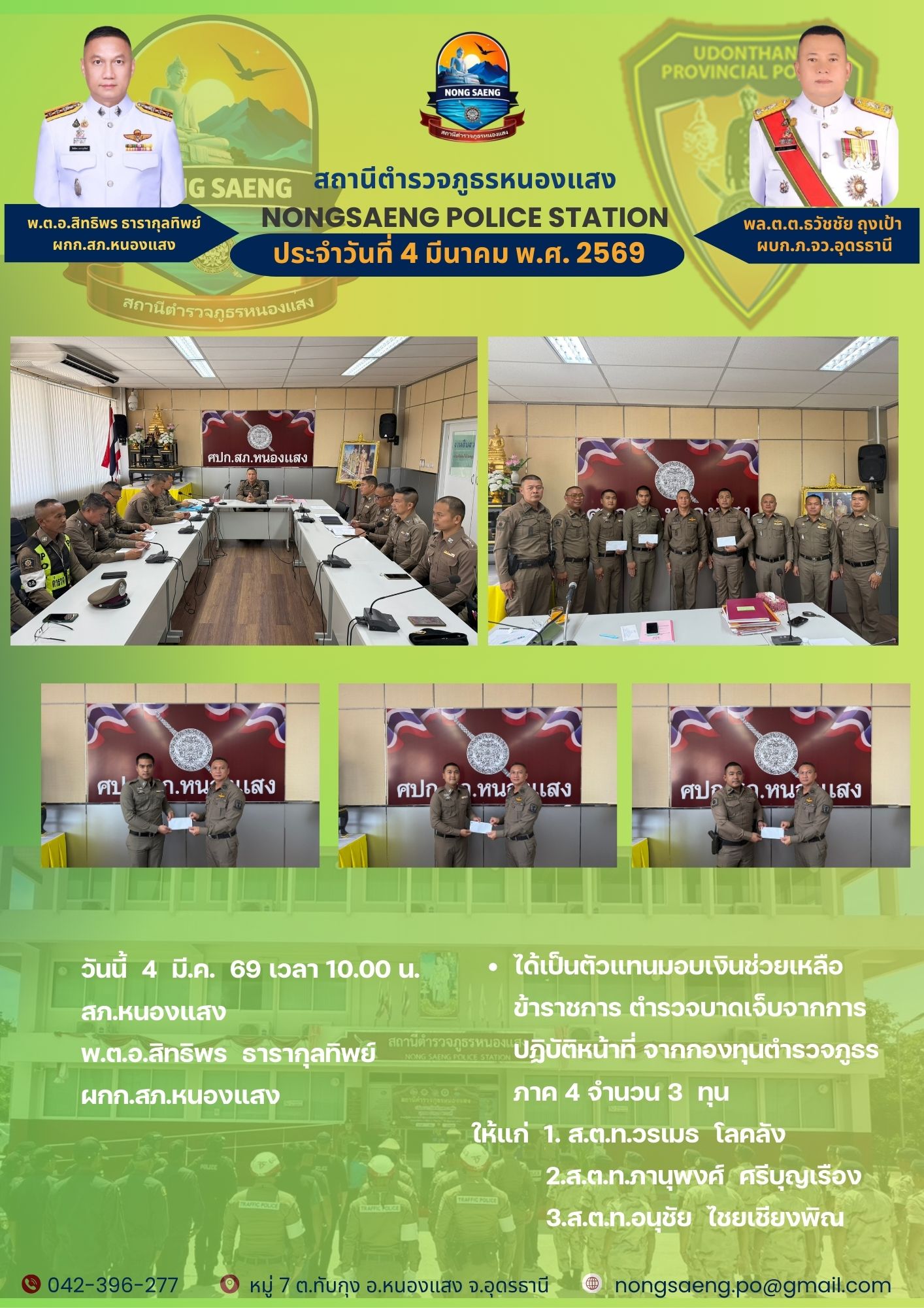 รายงานผลการปฏิบัติราชการประจำเดือนสถานีตำรวจภูธรหนองแสง