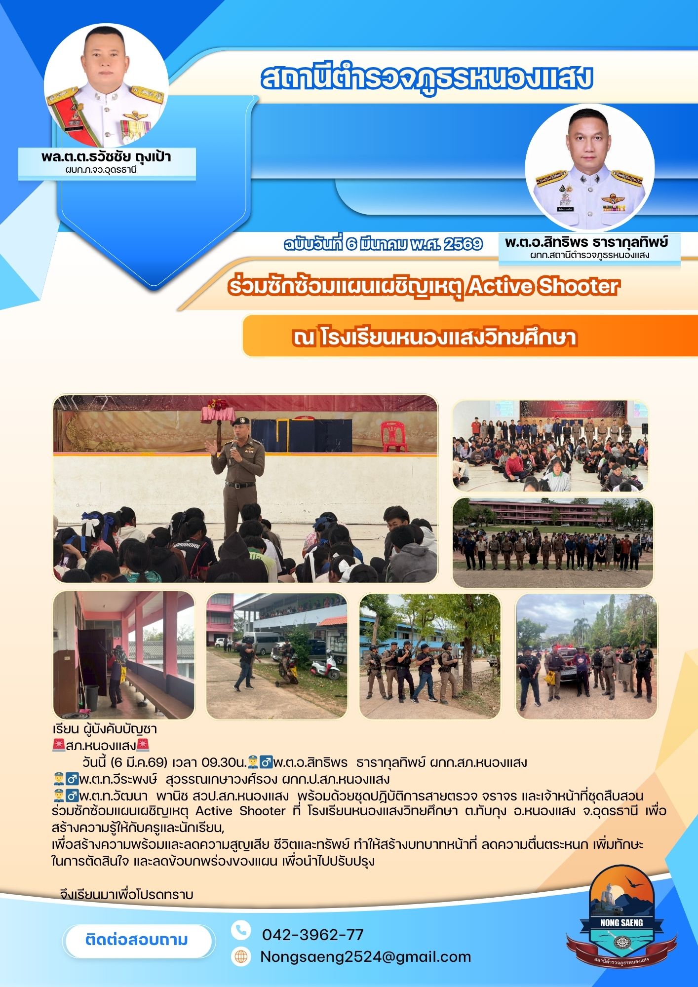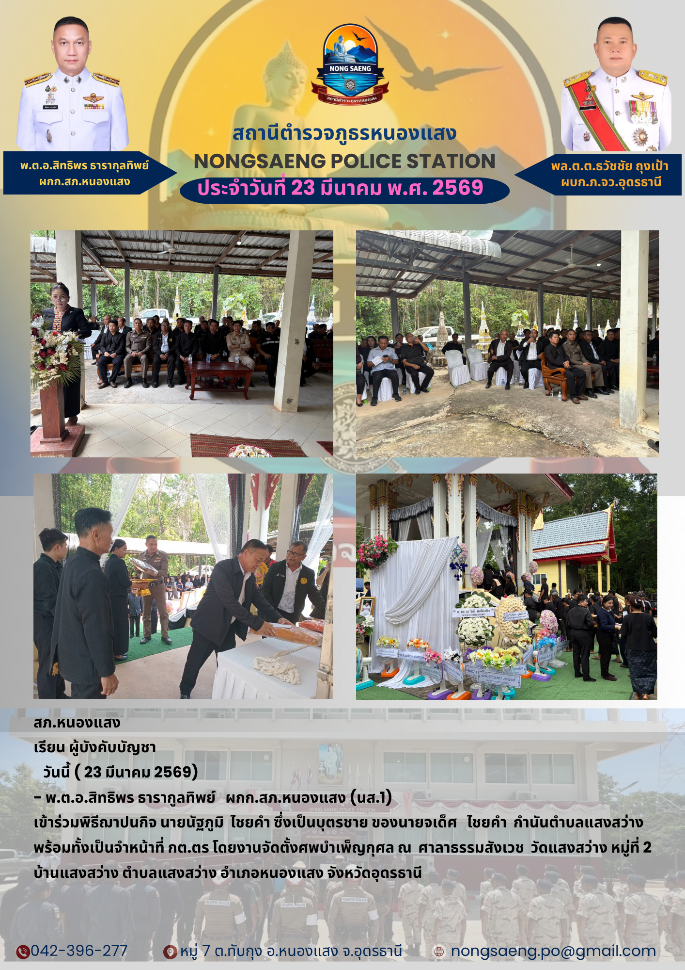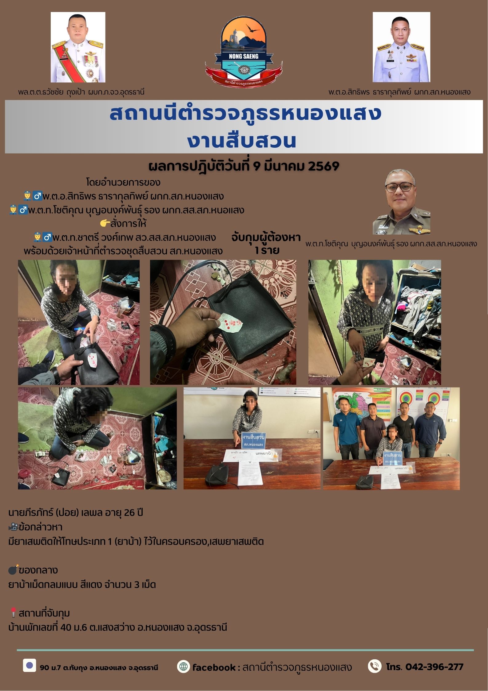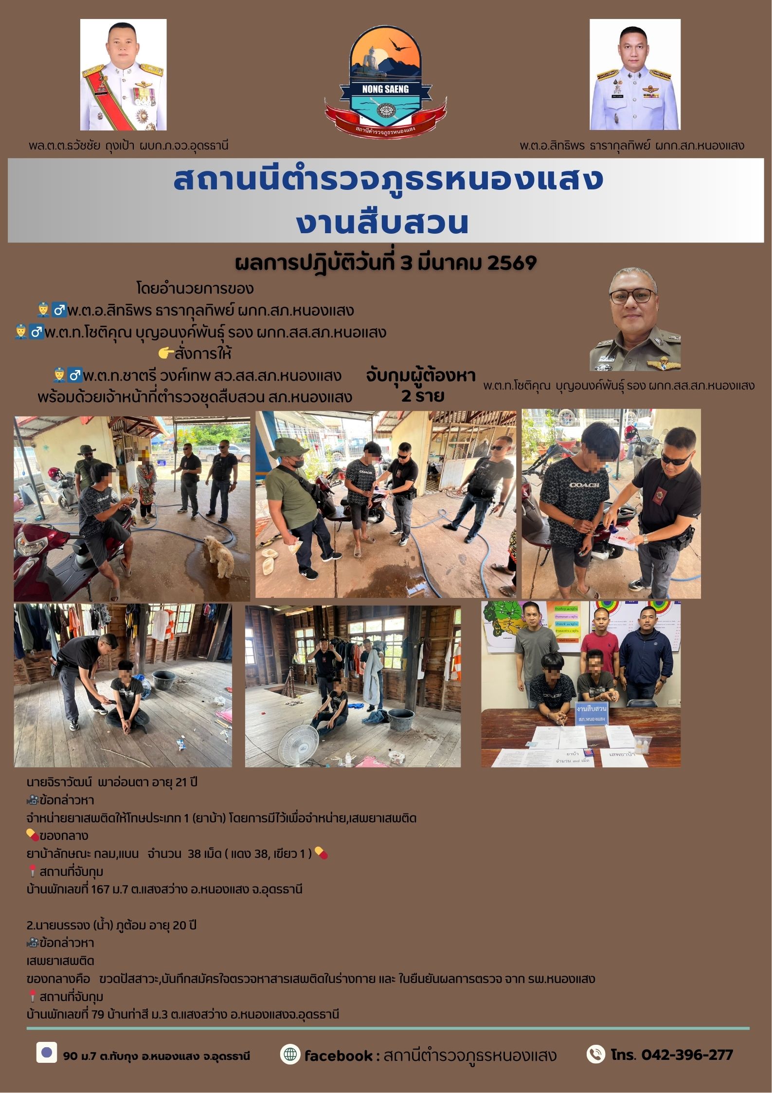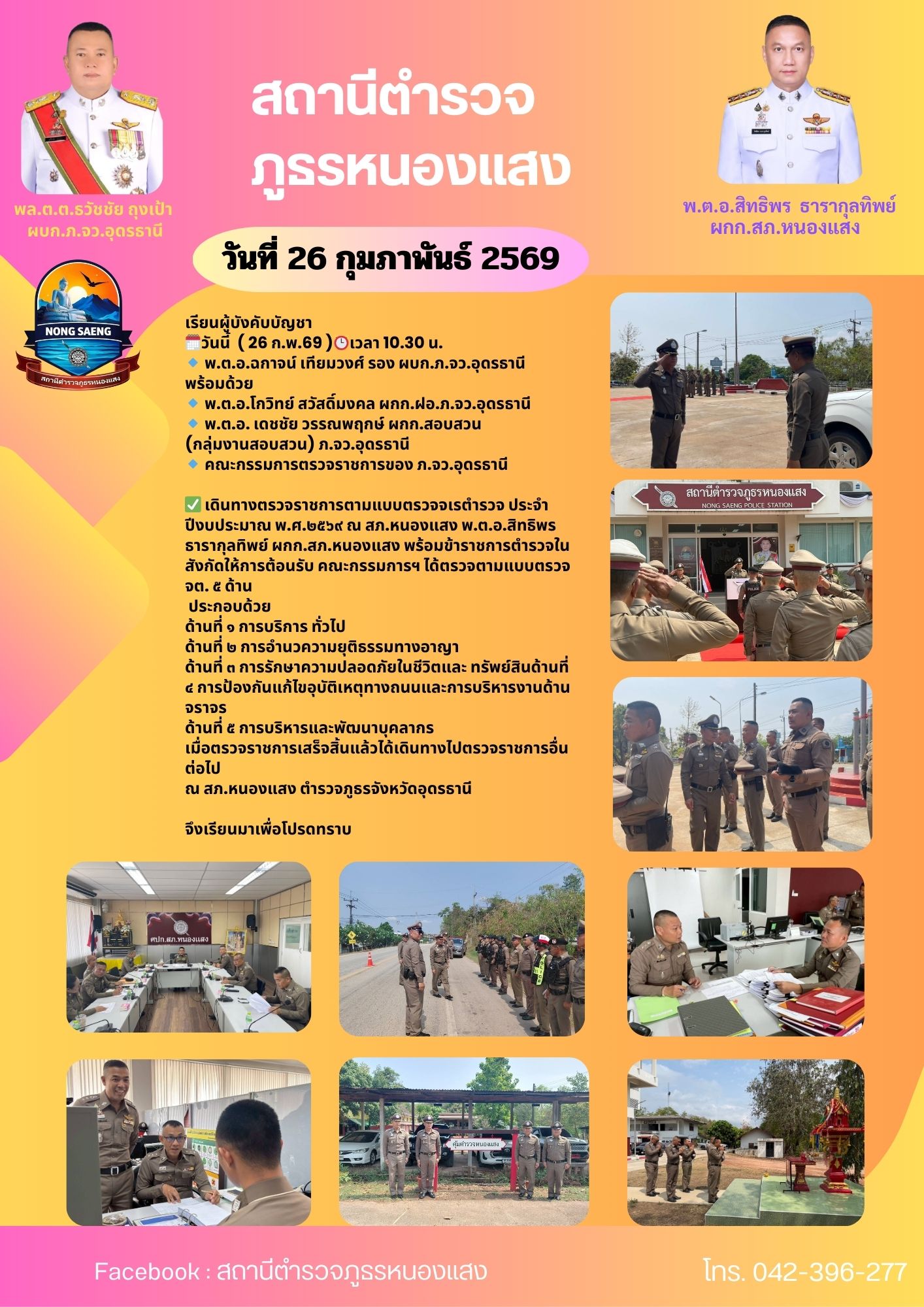 รายงานผลการปฏิบัติราชการประจำเดือนสถานีตำรวจภูธรหนองแสง