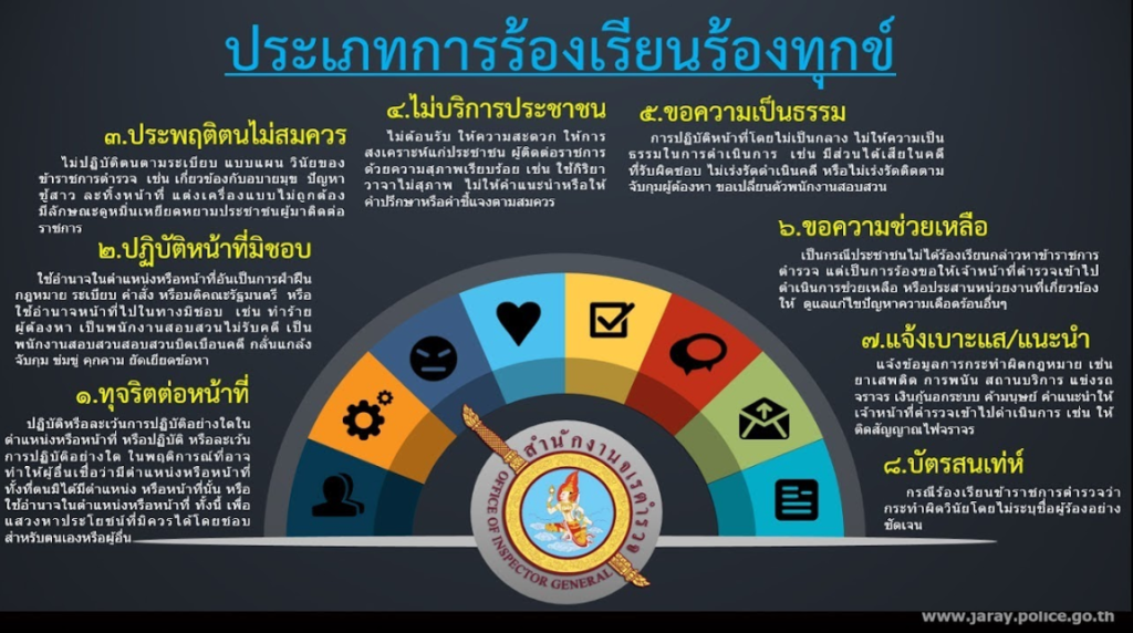 ช่องทางการแจ้งเรื่องร้องเรียน/แจ้งเบาะแส ผ่านสำนักงานจเรตำรวจ สำนักงานตำรวจแห่งชาติ