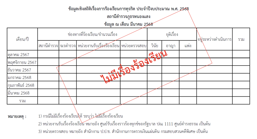 ข้อมูลเชิงสถิติเรื่องร้องเรียนการทุจริตประจำปีงบประมาณ 2568